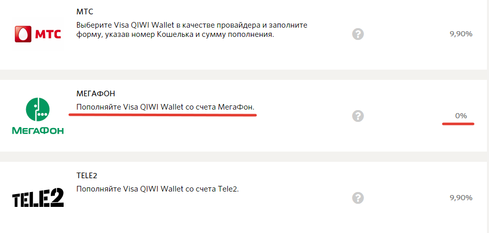 Найдите в списке сотового оператора «Мегафон» и щелкните по нему. Здесь же будет указана комиссия, которая будет снята
