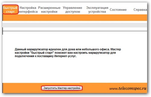 •  Активировать вкладку Быстрый старт, после чего нажать на «Запустить Мастер Настроек»