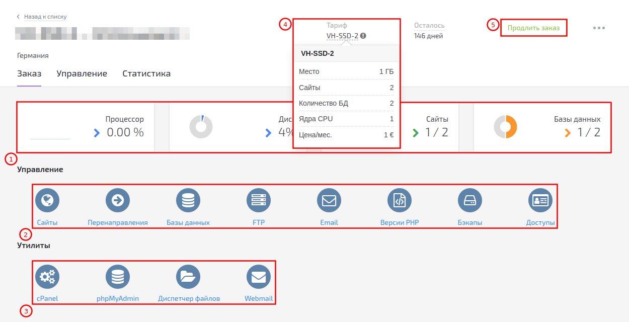 • 4 - Информация о вашем тарифе и срок действия заказа (оплаченного периода);