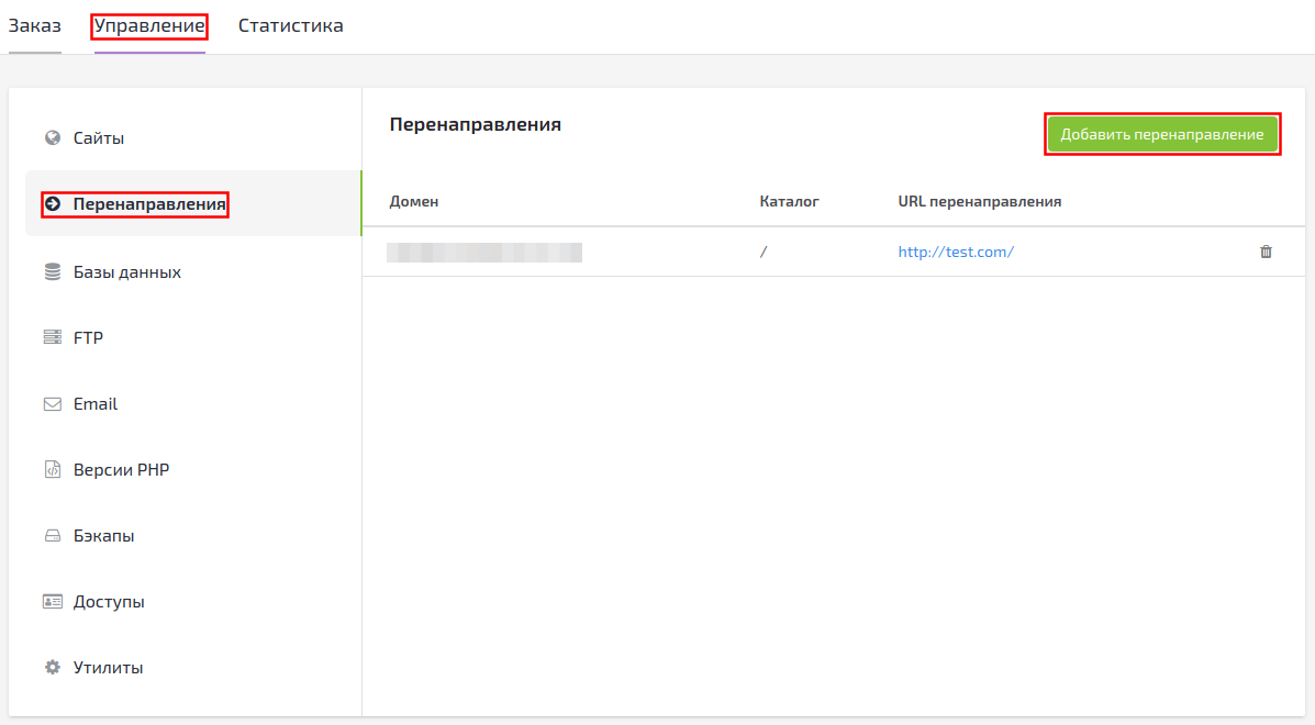 • Возможность добавлять редиректы с домена на домен или с одной страницы сайта на другую.