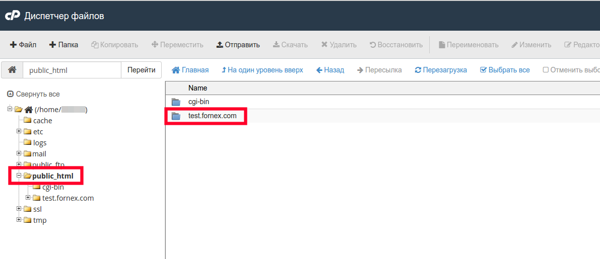 Папки ваших сайтов находятся в корне папки public_html , которые можно просмотреть через Диспетчер файлов или через FTP-клиент: