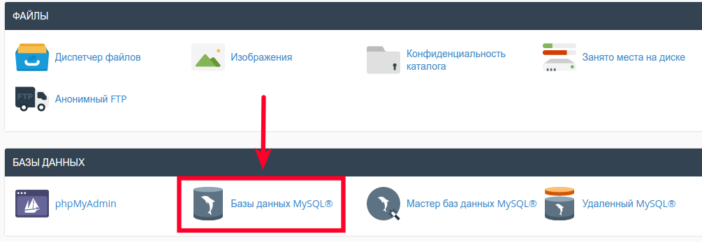 Первая база данных MySQL создается автоматически при выдаче заказа хостинга. Данные описаны в Биллинге, раздел «Управление → Доступы» и выглядят так: