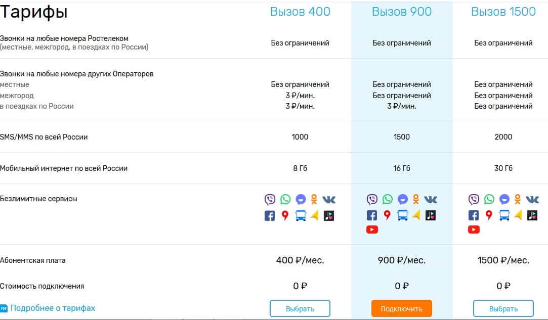 1. тариф «Вызов» Ростелеком;
